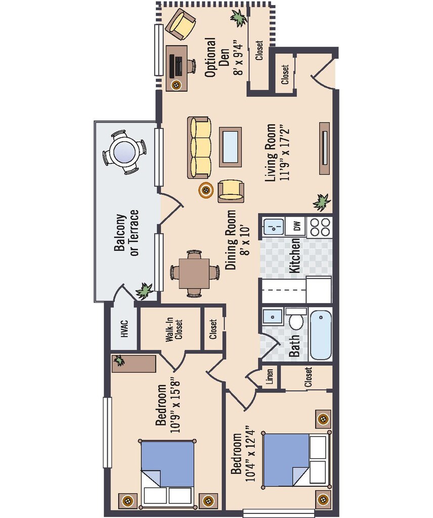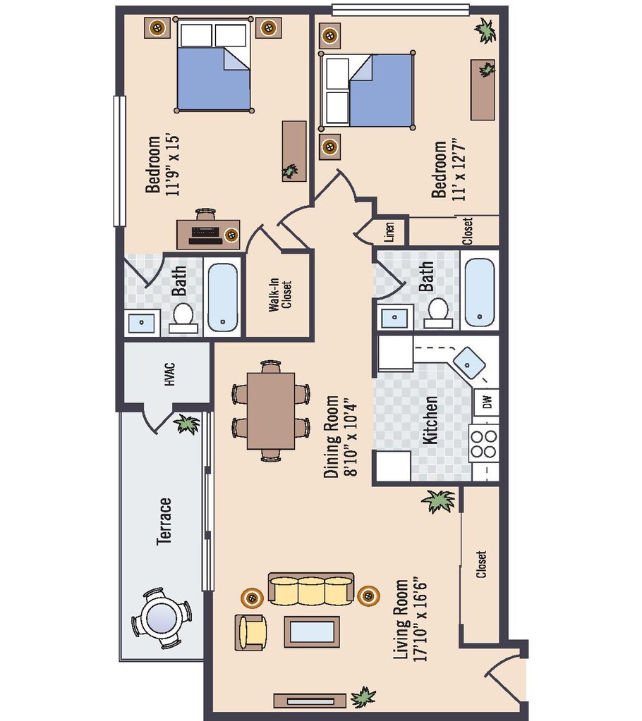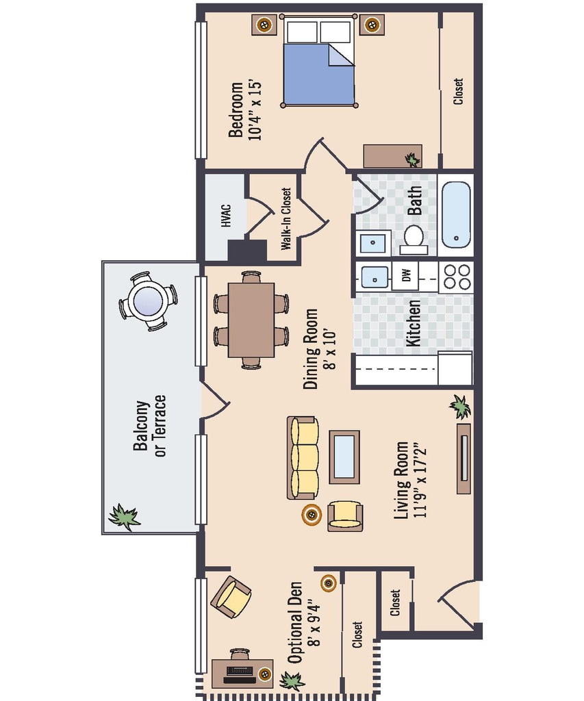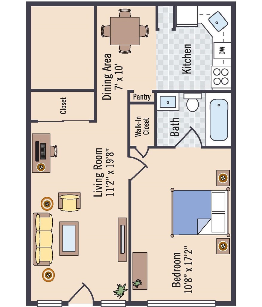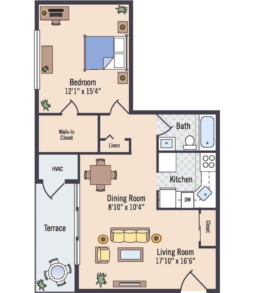 1 Bed, 1 Bath, 708 sq ftAvailable NowLargest 1 BedroomThis is the largest 1 Bedroom at this PropertyModel Gallery