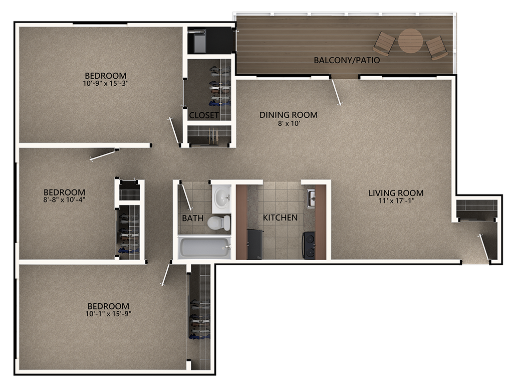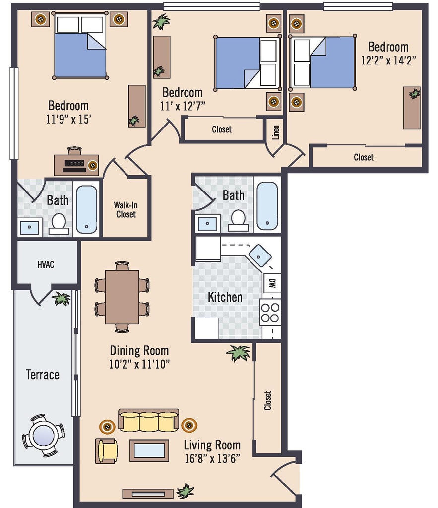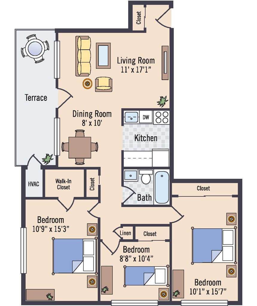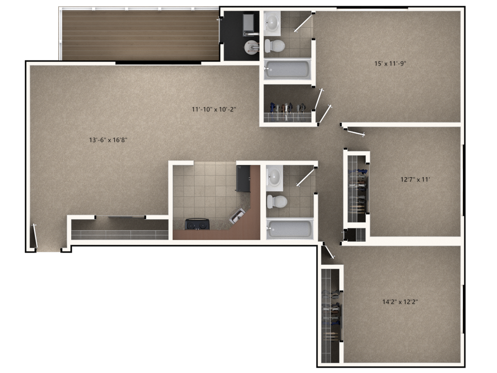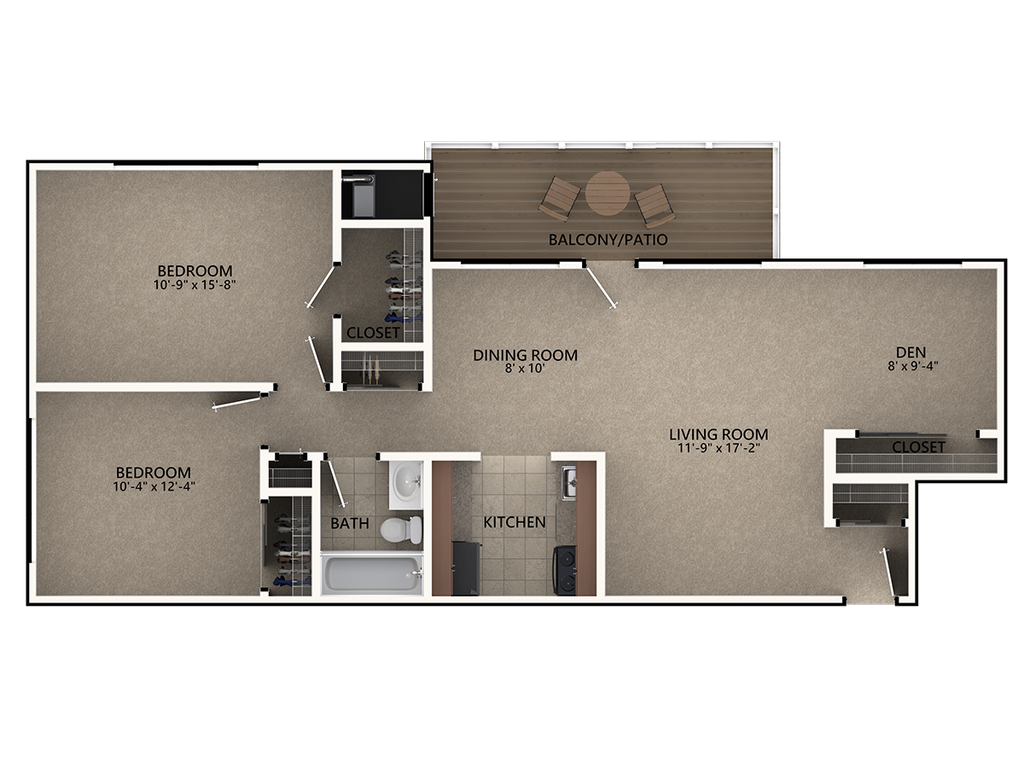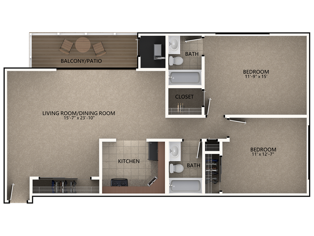 1 Bed, 1 Bath, 708 sq ftAvailable NowLargest 1 BedroomThis is the largest 1 Bedroom at this PropertyModel Gallery