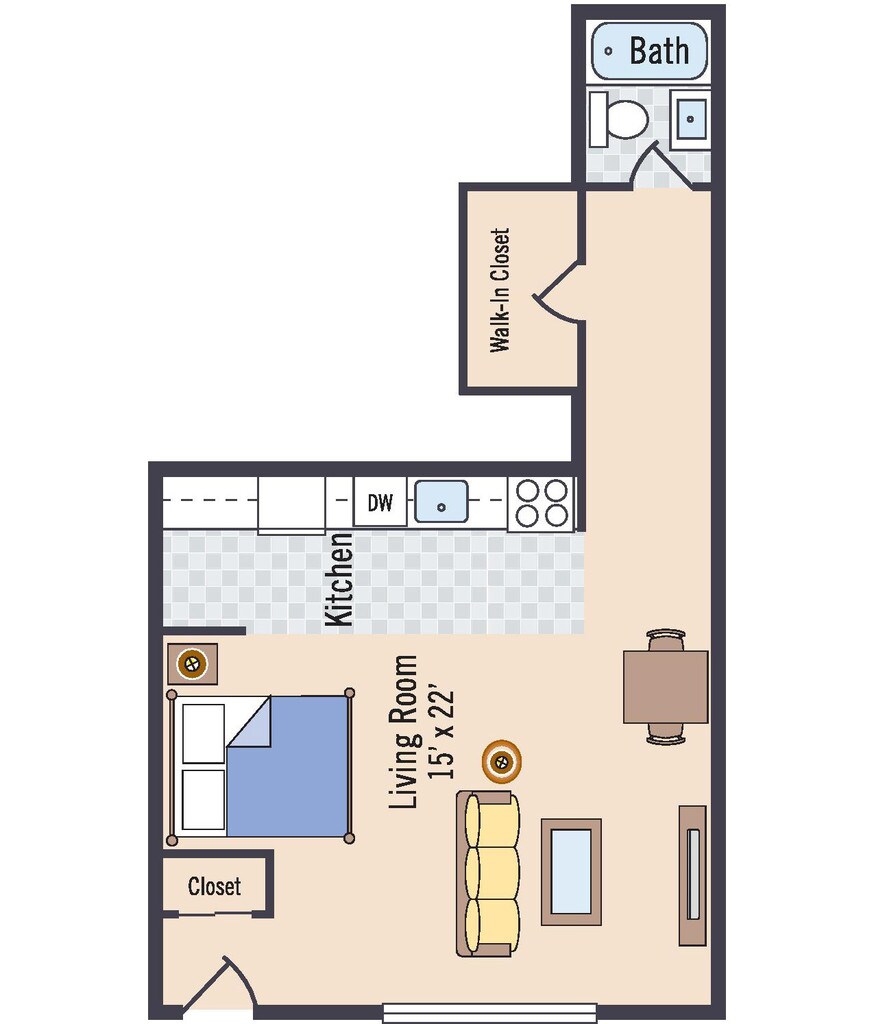 EFFICIENCY, NHP - Floorplan 3 1 Bedroom