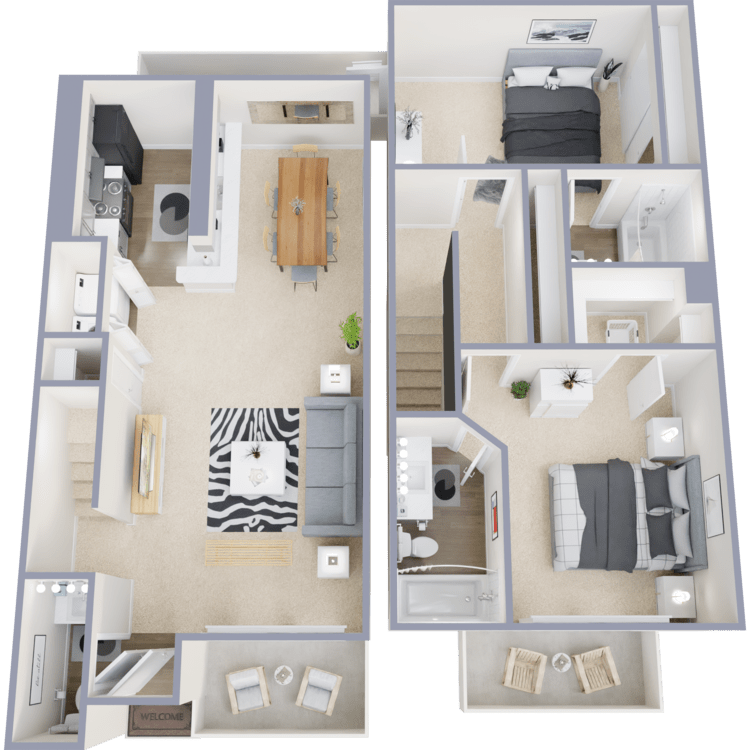 2 Beds, 2.5 Baths, 974 sq ftLargest 2 BedroomThis is the largest 2 Bedroom at this PropertyModel Gallery
