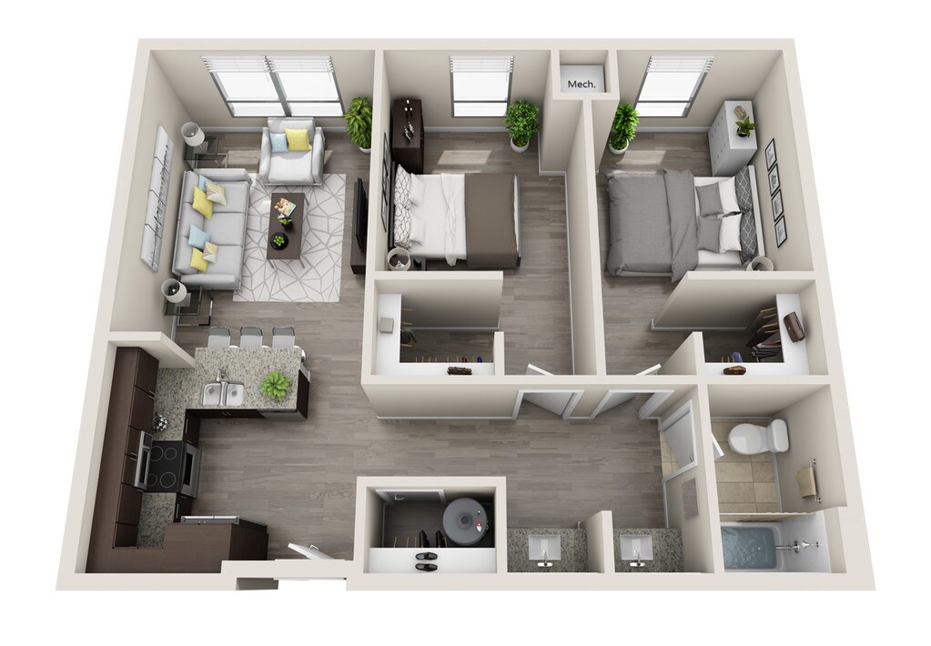 2 Beds, 1 Bath, 865 sq ftModel Gallery