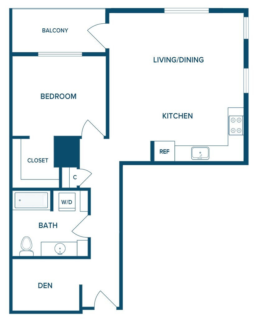 Studio, 1 Bath, 649-651 sq ftAvailable NowLargest StudioThis is the largest Studio at this PropertyModel Gallery