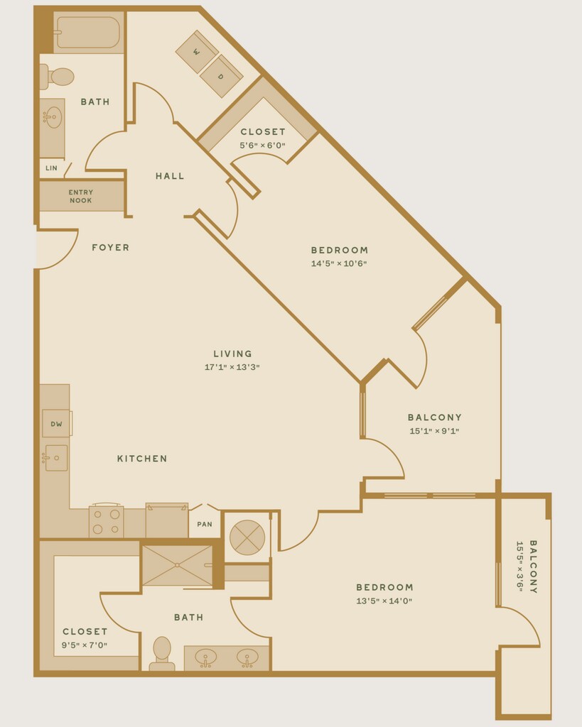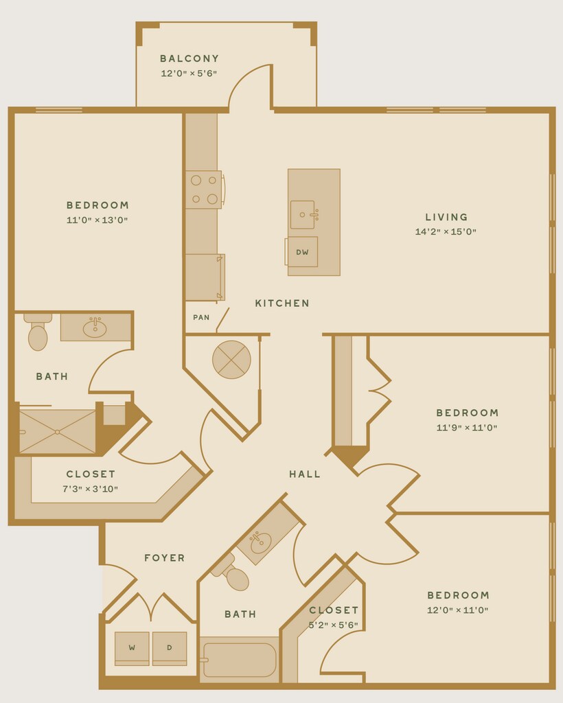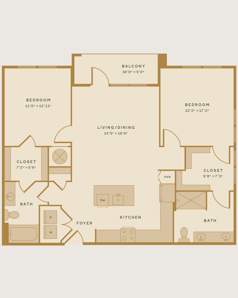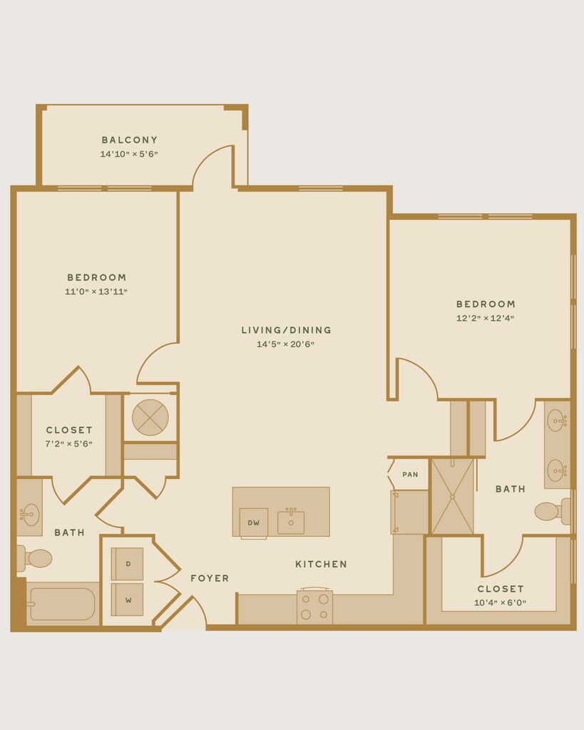 Apartment Model: DeltaFrom $1,7431 Bedroom, 1 Bath, 757-802 sq ftAvailable NowFloor plans are artist's rendering. All dimensions are approximate. Actual product and specifications may vary in dimension or detail. Not all features are available in every rental home. Prices and availability are subject to change. Base rent is based on monthly frequency. Additional fees may apply, such as but not limited to package delivery, trash, water, amenities, etc. Deposits vary. Please see a representative for details.