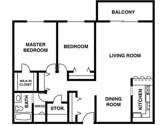 1 Bed - 1 Bath - Floorplan 1 2 Bedrooms