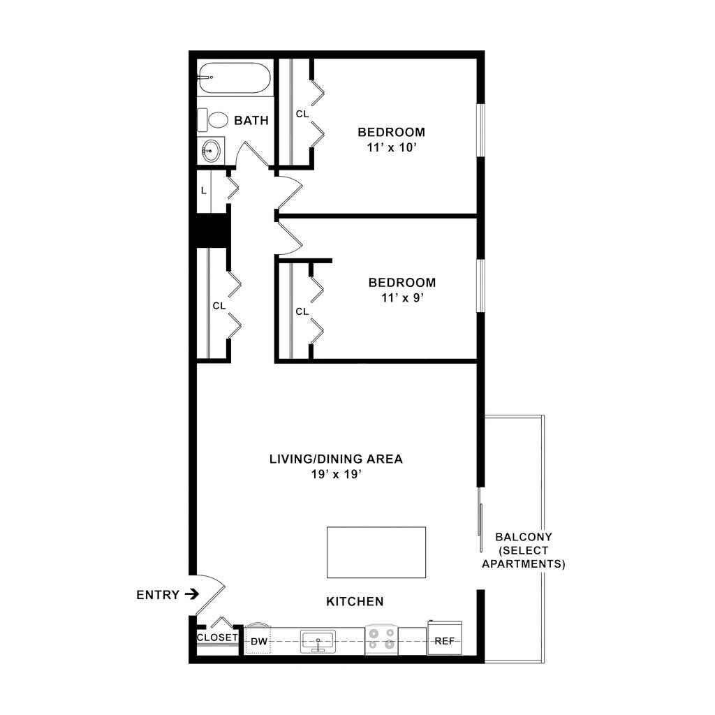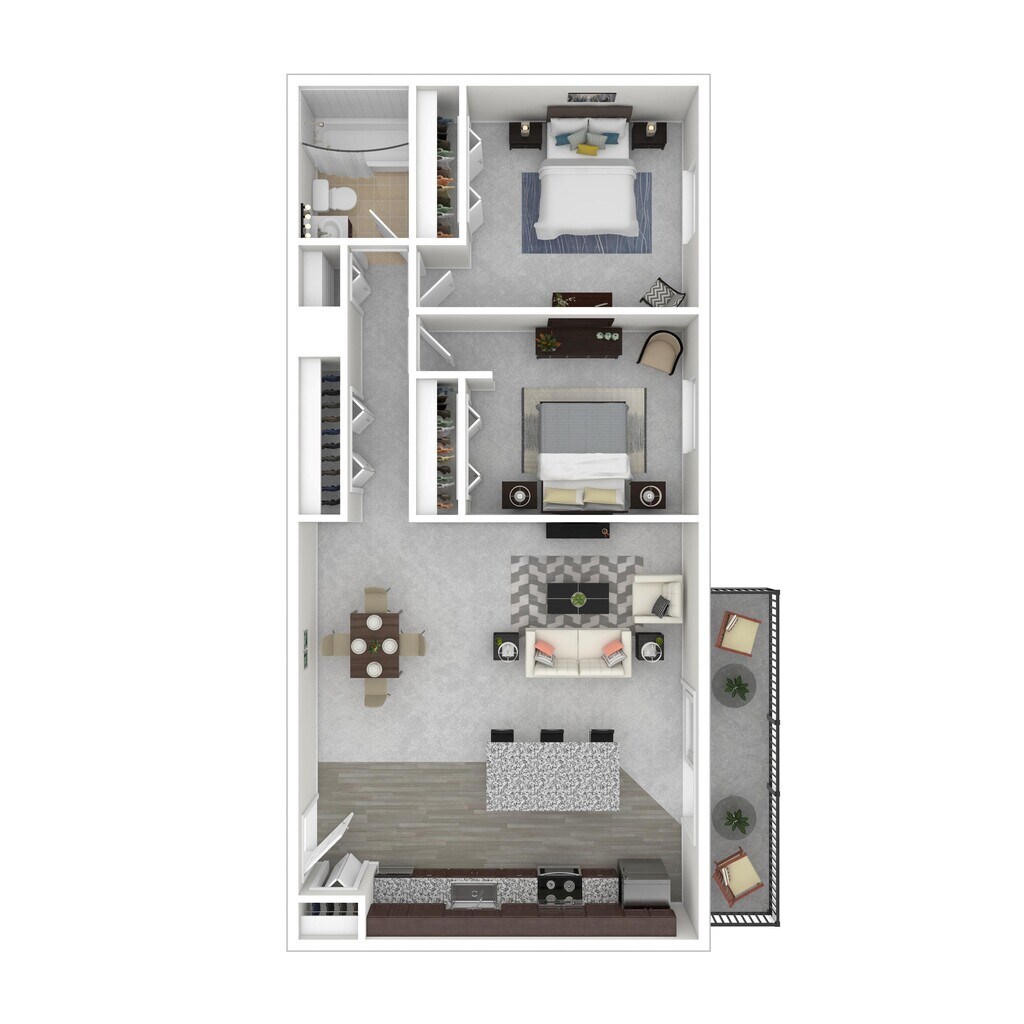 2 Beds, 1 Bath, 722-842 sq ftAvailable NowModel Gallery