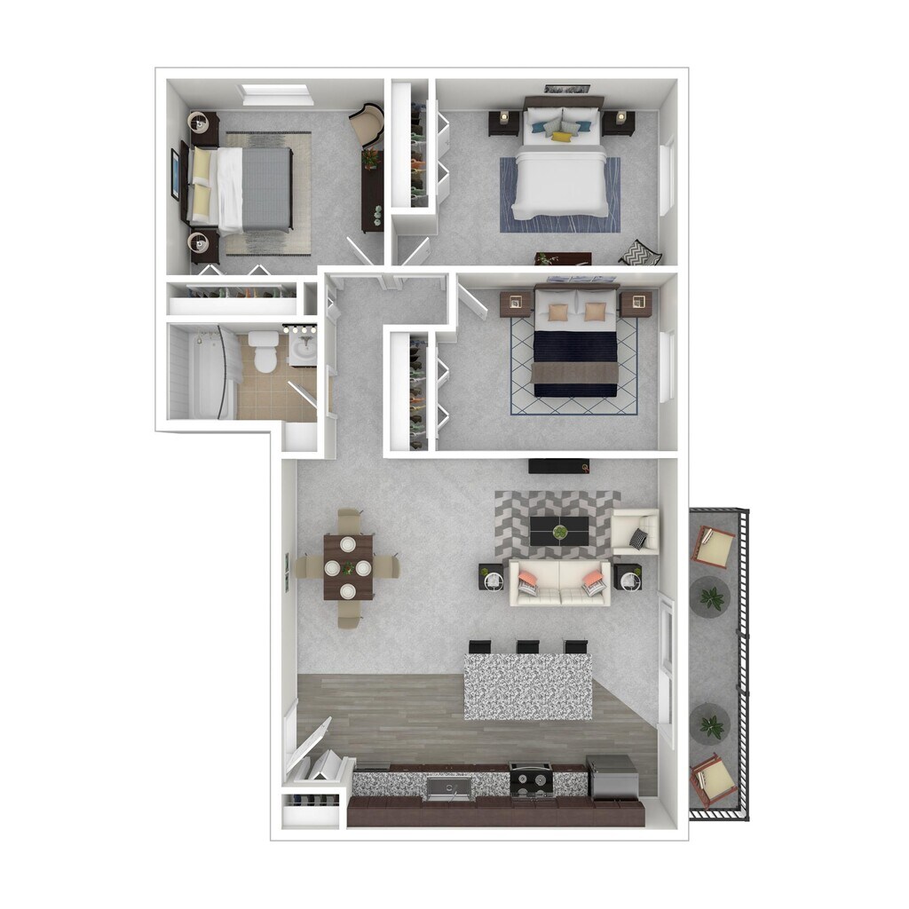 Apartment Model: Spruce$1,5882 Bedroom, 1 Bath, 722-842 sq ftAvailable Now![]()