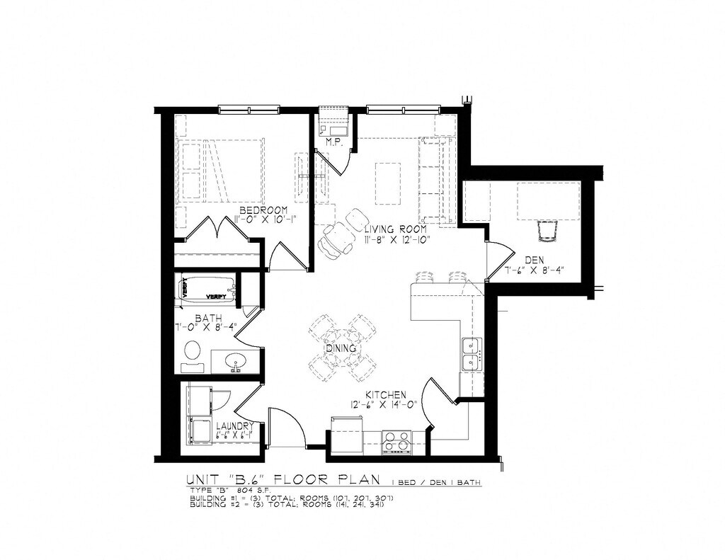 1 Bedroom 1 Bath + Den - Floorplan 3 2 Bedrooms
