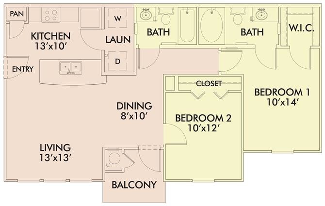 2 Beds, 2 Baths, 896 sq ftAvailable NowModel Gallery