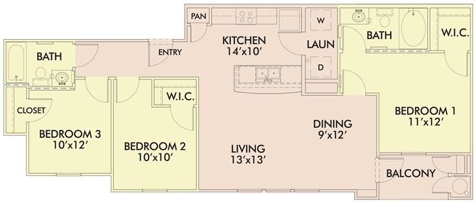 Apartment Model: The Plumeria2 Bedroom, 2 Bath, 908 sq ftAvailable NowThe Plumeria - Floorplan 1 3 Bedrooms