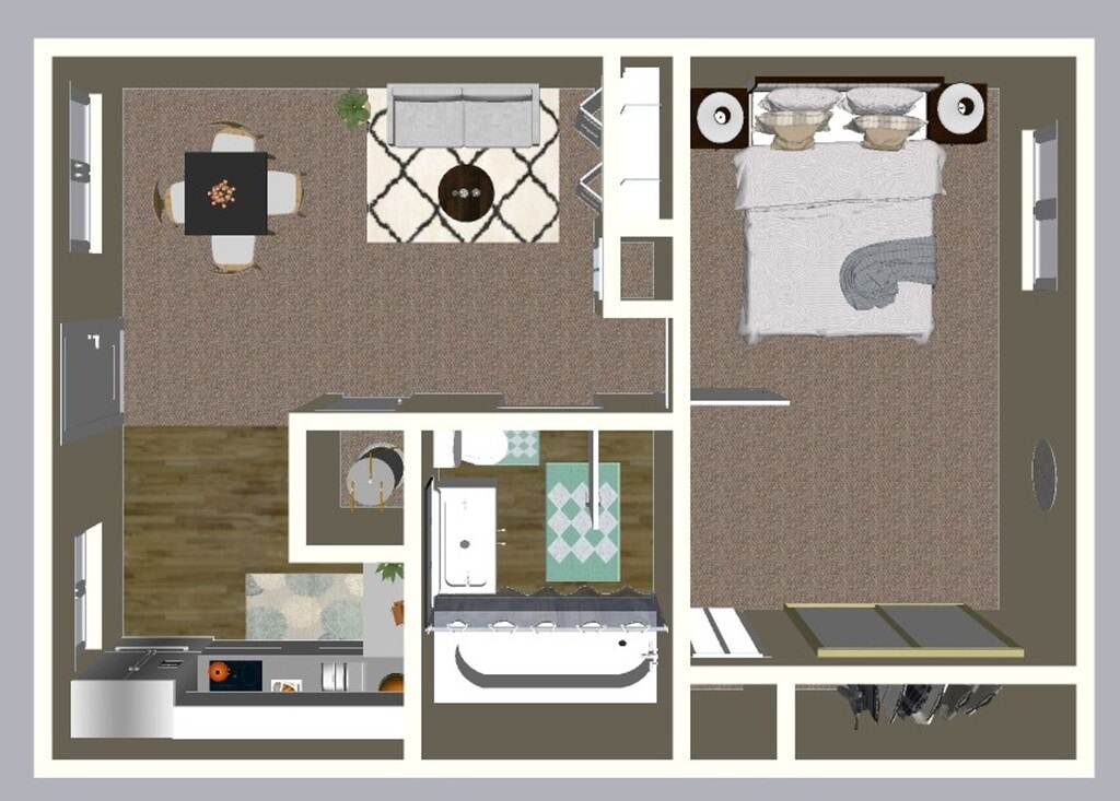 1 Bed, 1 Bath, 620 sq ftAvailable NowModel Gallery