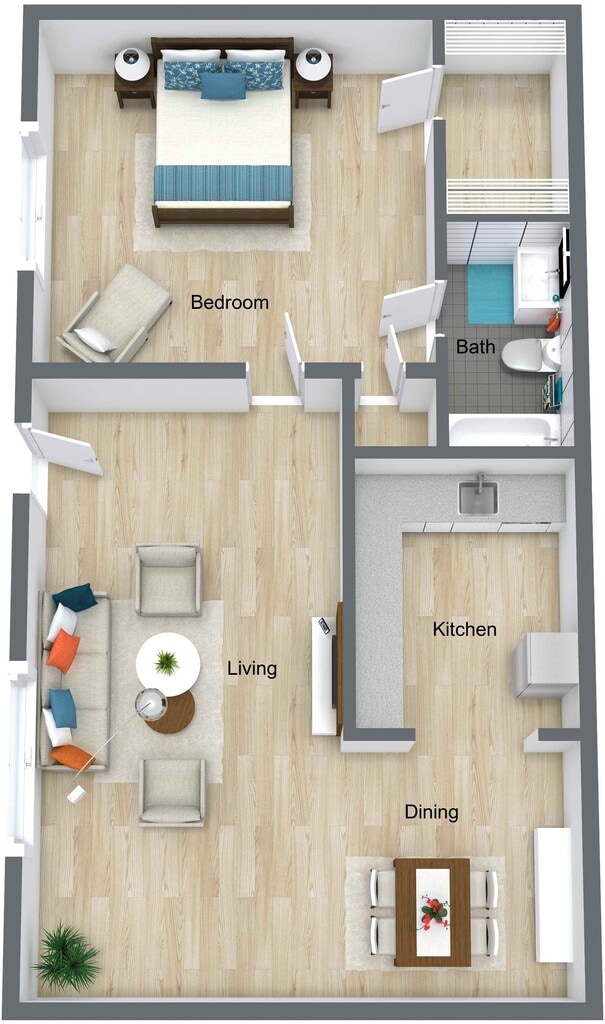 Willow -1 bed/1 bath - Floorplan 2 Apartment Unit: 339Apartment Model: Willow -1 bed/1 bath$8491 Bedroom, 1 Bath, 750 sq ftAvailable NowMaple - 1 bed/1 bath