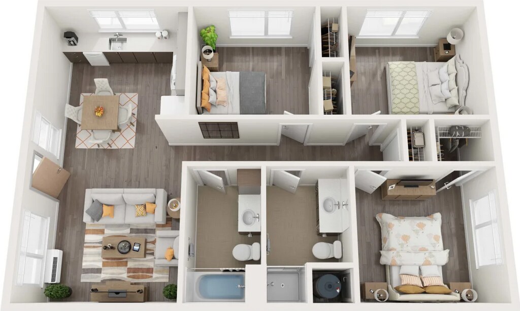 Apartment Model: Three-Bedroom$1,7673 Bedroom, 2 Bath, 1100 sq ftUnavailable![]()