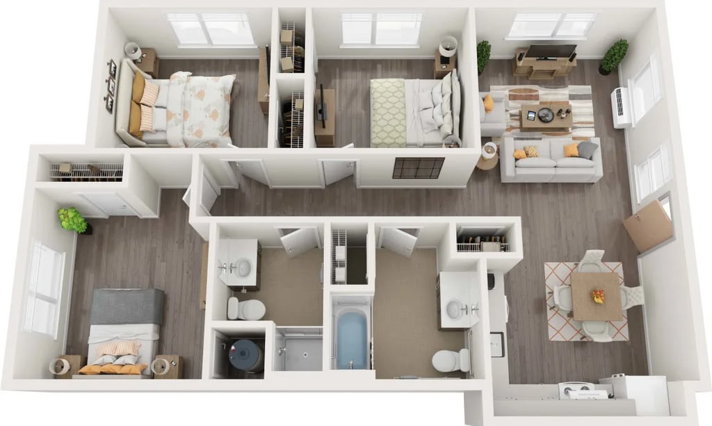 Two-Bedroom - Floorplan 4 Apartment Unit: 208Apartment Model: Two-Bedroom$1,5352 Bedroom, 1 Bath, 850 sq ftAvailable NowApartment Unit: 436Apartment Model: Two-Bedroom$1,5352 Bedroom, 1 Bath, 850 sq ftAvailable Now3 Bedrooms