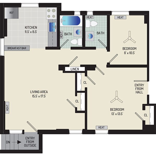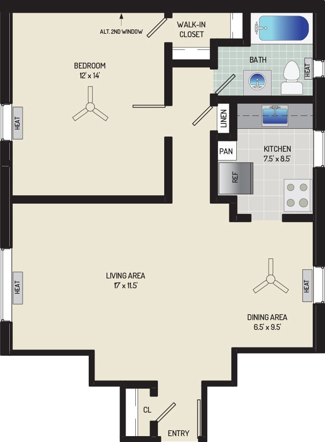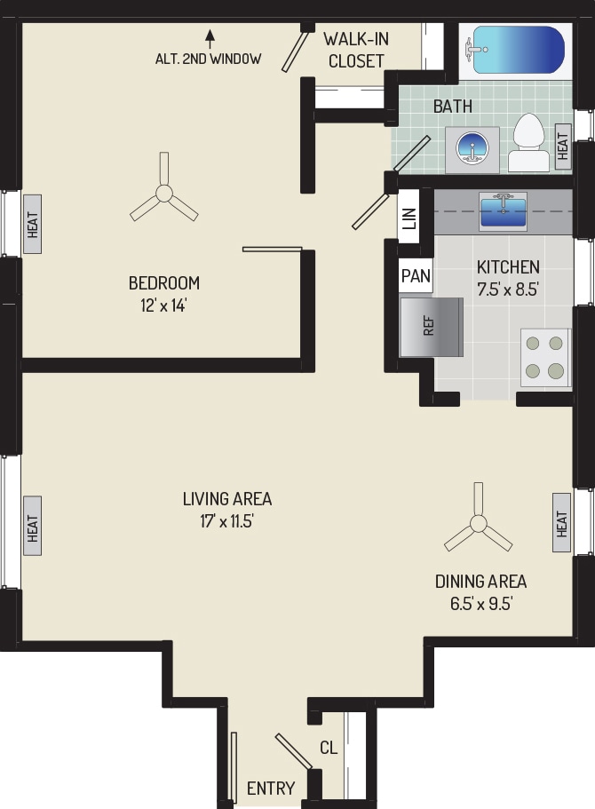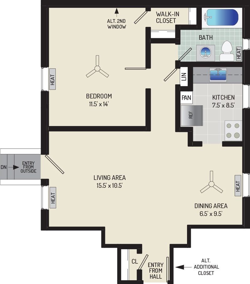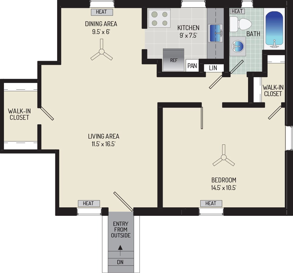 1 Bedroom + 1 Bath - Floorplan 15 ![]()