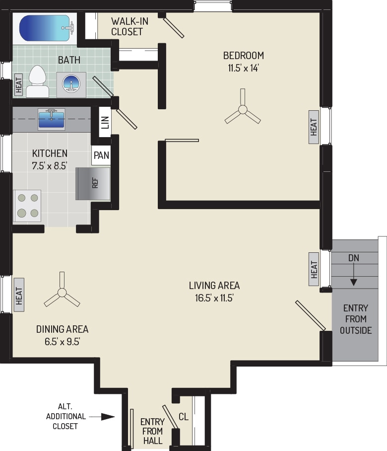 1 Bedroom + 1 Bath - Floorplan 14 ![]()