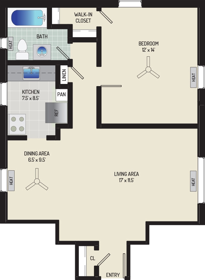 1 Bedroom + 1 Bath - Floorplan 17 ![]()