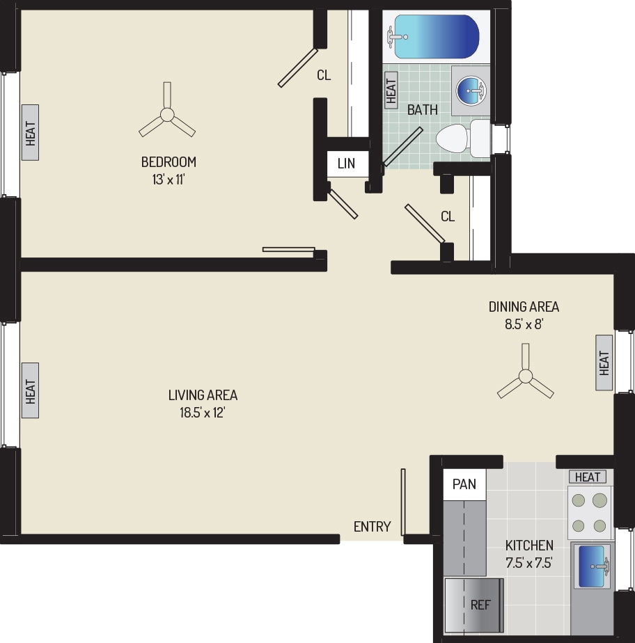 1 Bedroom + 1 Bath - Floorplan 13 ![]()
