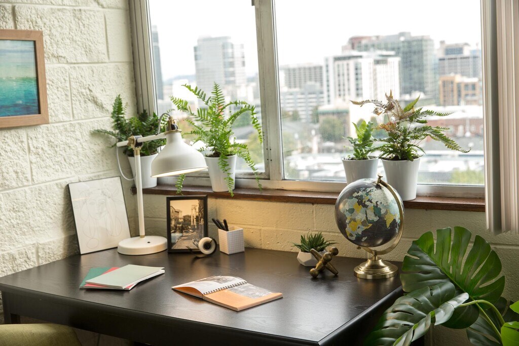 You must be enrolled in school at least part-time to live at a College Housing Northwest property. This can be a trade school, community college or any type of higher education along with traditional colleges and universities. Located in the leafy, residential neighborhood of Goose Hollow, you'll find the Goose Hollow Tower to be the ideal place to call your new home. Our apartment community is comprised of 16 floors with many of our studio, one, and two bedroom apartment homes featuring sweeping views of downtown Portland, Mount Saint Helens, and Mount Hood. Our light-filled floor plans, complete with oversized windows, offer such conveniences as bicycle hooks in each apartment for easy storage. If school work beckons, you'll come to lean on our printing services, which are available 24/7. We also feature an outdoor courtyard for getting to know your new neighbors or find solitude in one of our study areas to catch up on a new novel. Goose Hollow Tower is just moments from PSU, so your commute to school will be a breeze! Plus, we're steps away from all public transportation lines for easy access to your favorite cafe, bookstore or coffee shop. Please contact us for a virtual or in-person tour! Along with being a nonprofit organization, sustainability is very important to us. We utilize 100% clean wind energy throughout, our custodial teams use only green cleaning products. low-flow aerators and shower heads are installed in all bathrooms to reduce water consumption, and our living, green roof provides storm water management and is energy efficient.