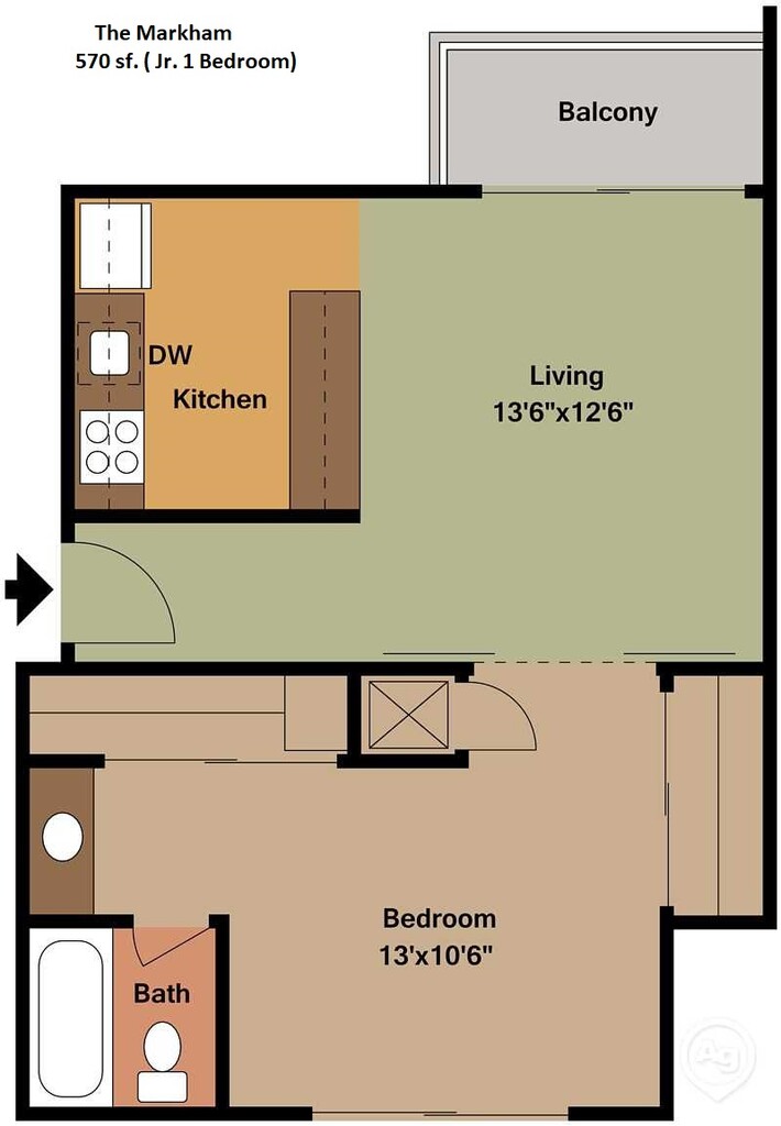 Apartment Model: MarkhamFrom $1,575Studio, 1 Bath, 570 sq ftAvailable October 29, 2025FloorplansPhotosMarkham - Image 1 Markham - Image 2 Markham - Floorplan 3 Apartment Unit: 1611-10Apartment Model: Markham$1,575Studio, 1 Bath, 570 sq ftAvailable October 29, 20251 Bedroom