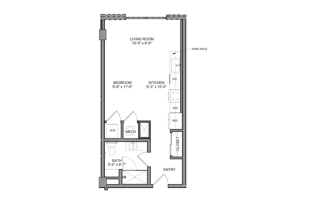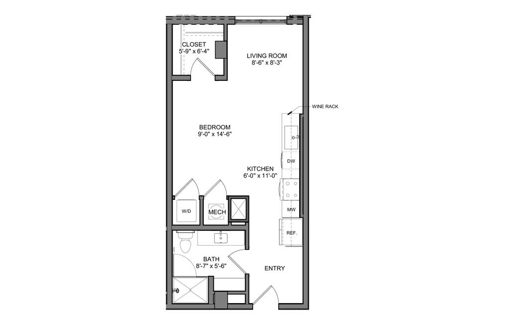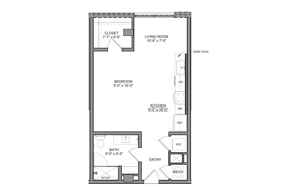 Studio, 1 Bath, 536 sq ftAvailable NowModel Gallery
