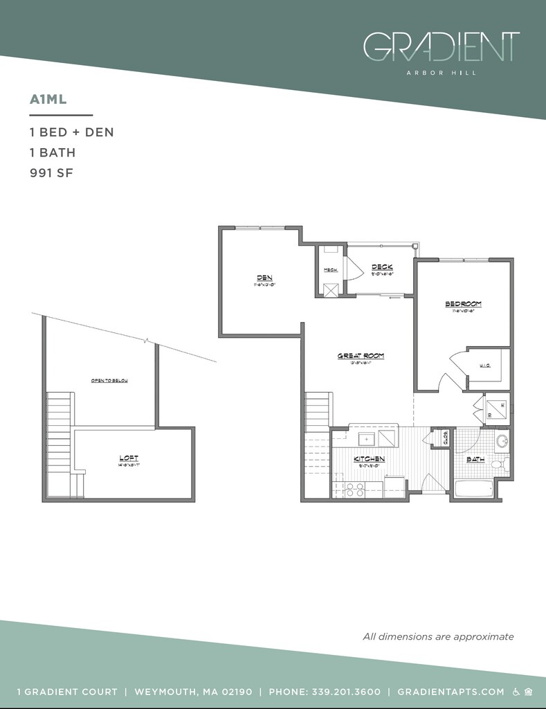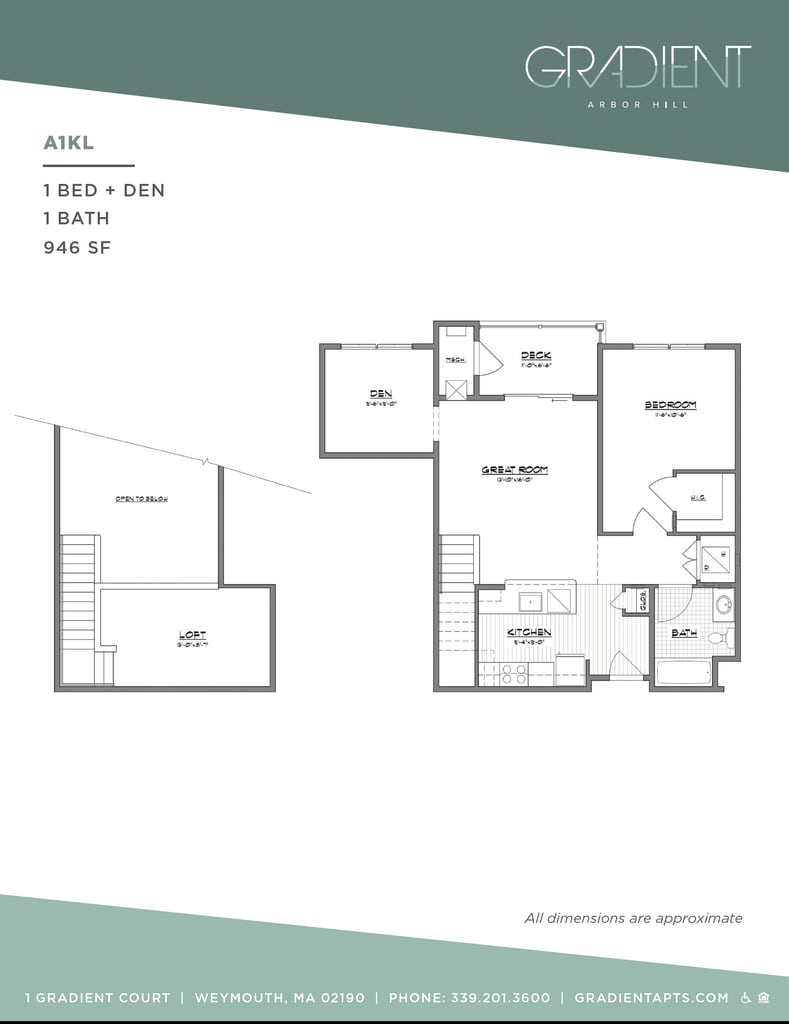 Apartment Model: A1KL with Loft$2,6131 Bedroom, 1 Bath, 946 sq ftAvailable Now![]()
