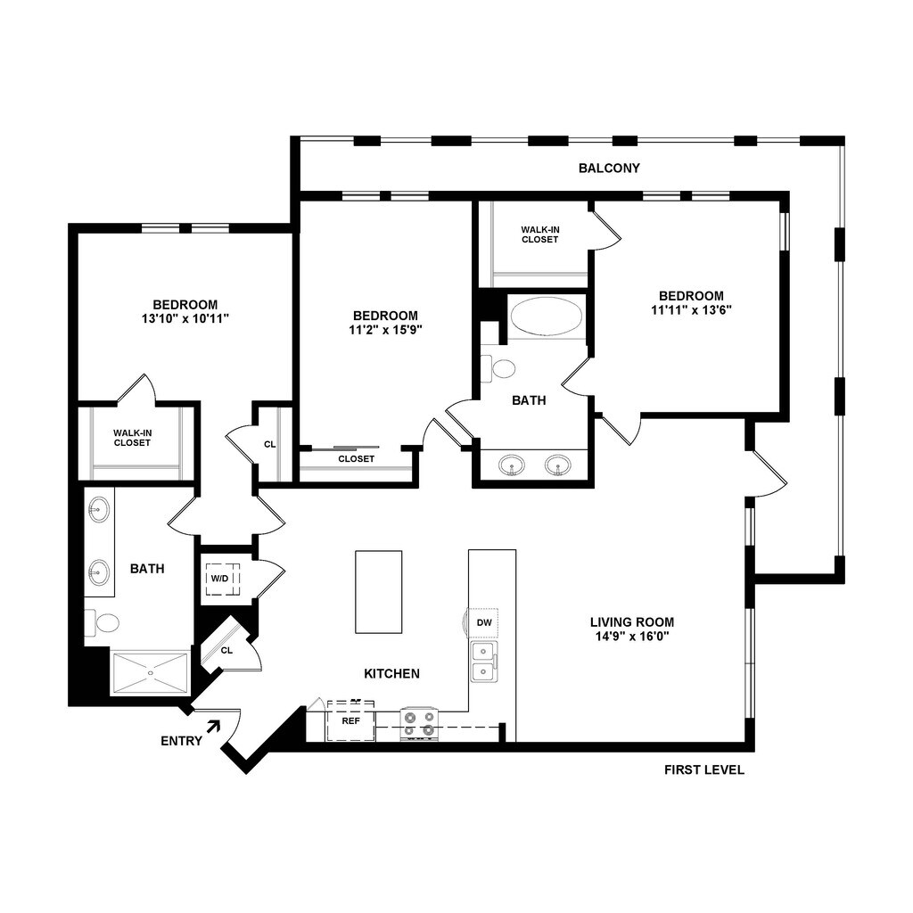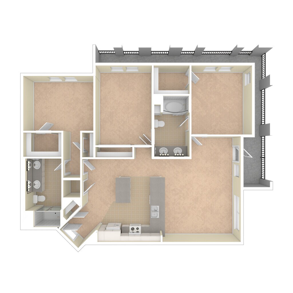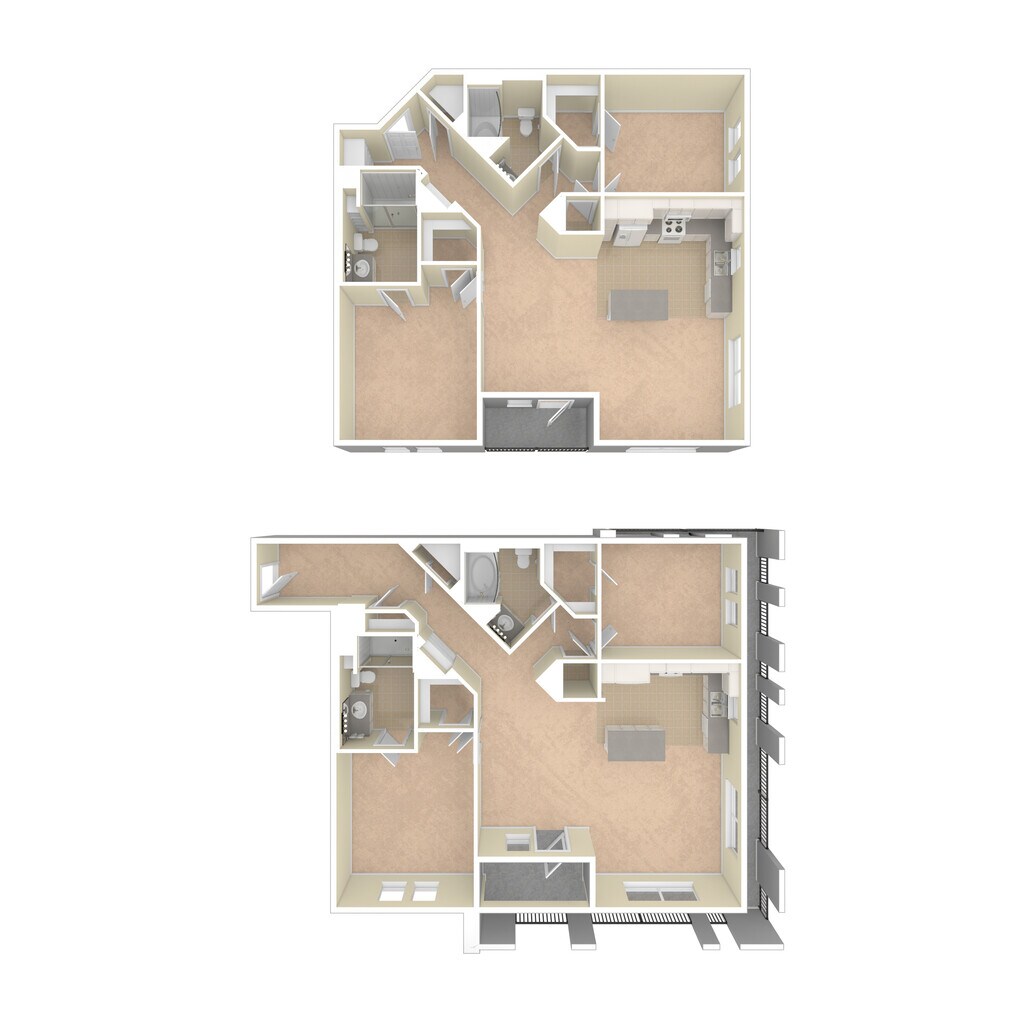Plan A3 - Floorplan 3 Apartment Unit: 432Apartment Model: Plan A3$3,1301 Bedroom, 1 Bath, 717 sq ftAvailable NowPlan A1