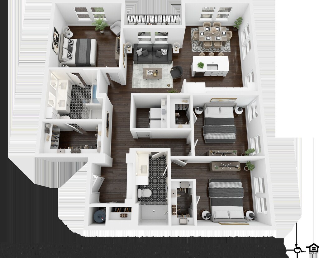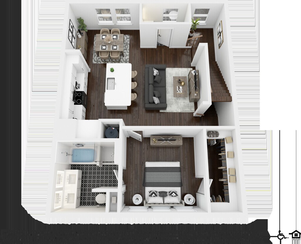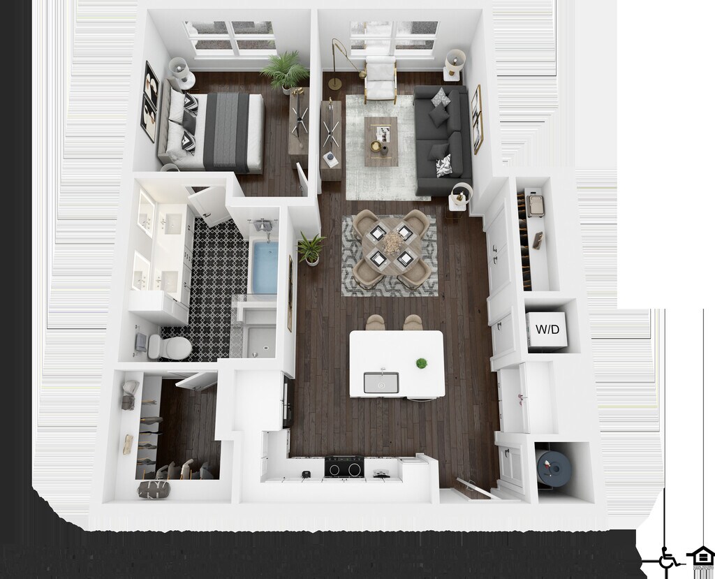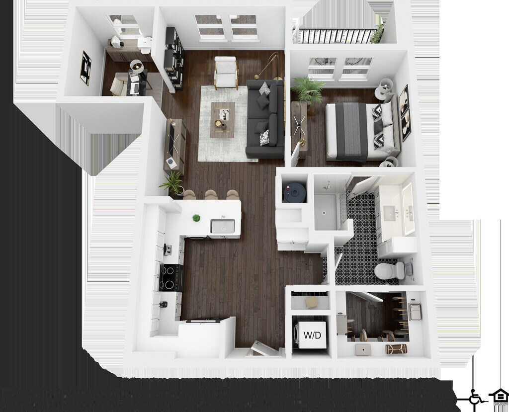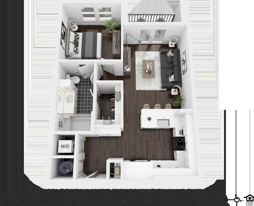 1 Bed, 1 Bath, 728-741 sq ftAvailable NowModel Gallery