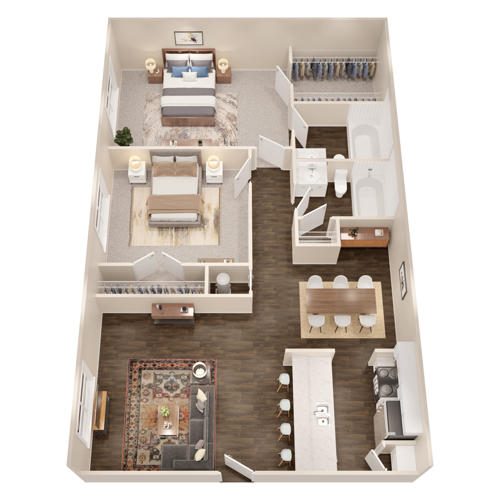 2 Beds, 2 Baths, 870 sq ftAvailable January 9, 2026Model Gallery