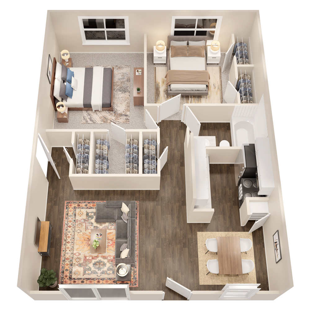 Apartment Model: DawnFrom $8302 Bedroom, 1 Bath, 820 sq ftAvailable Now![]()