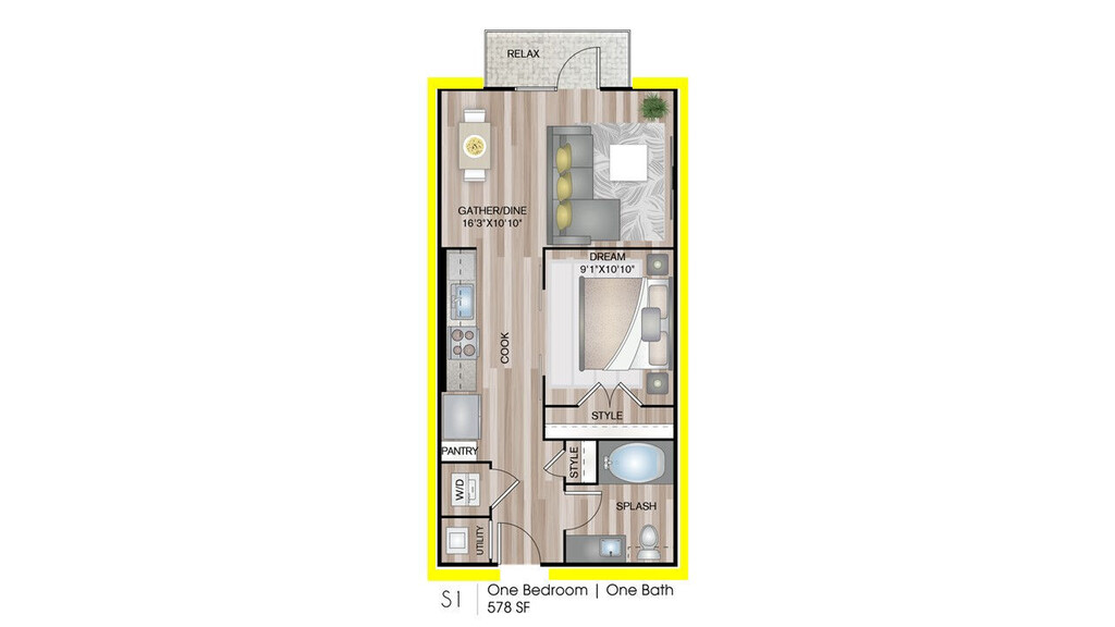 1 Bed, 1 Bath, 691 sq ftAvailable NowModel Gallery
