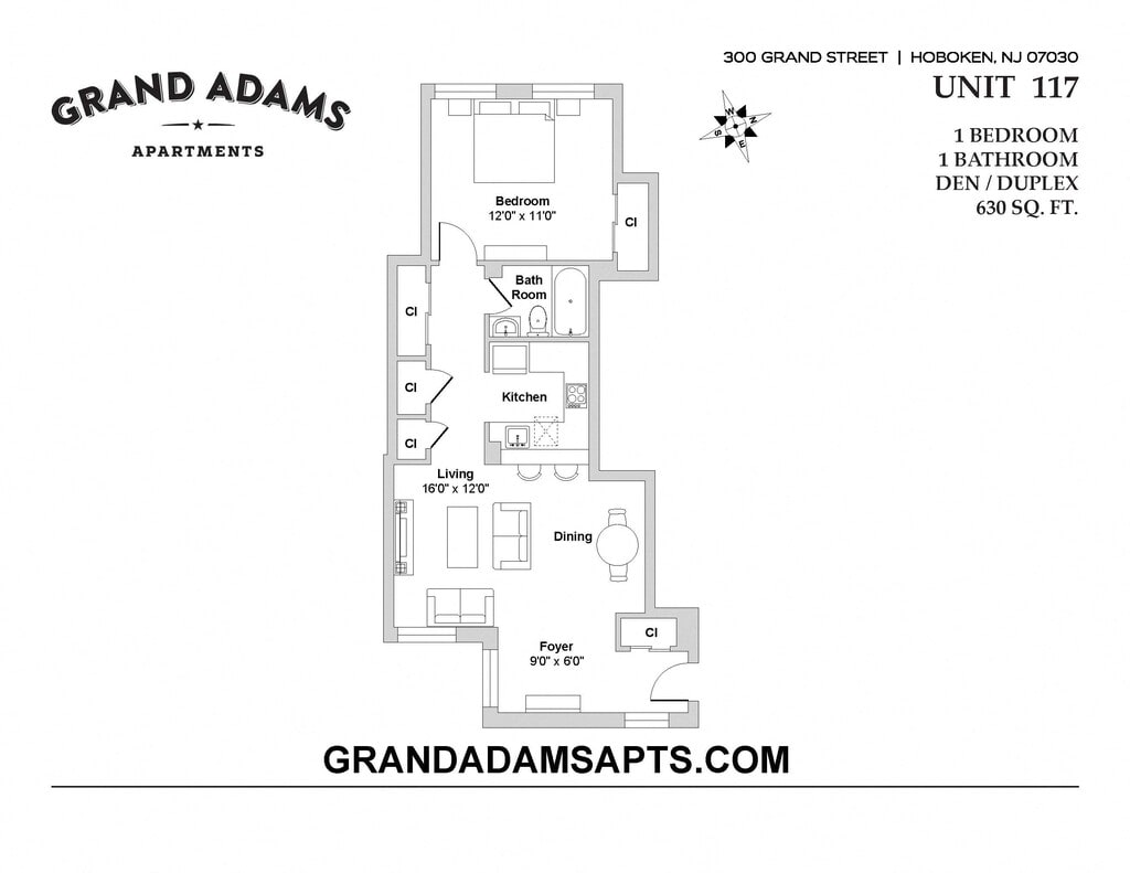 UNIT 117 - Floorplan Apartment Unit: 117Apartment Model: UNIT 117$3,8001 Bedroom, 1 Bath, 630 sq ftAvailable May 11, 2026![]()