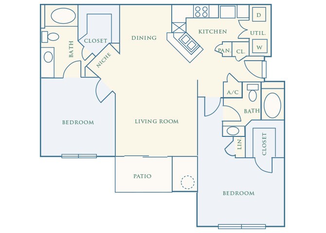 Apartment Model: A2 (The Sundance)From $1,3361 Bedroom, 1 Bath, 830 sq ftAvailable Now![]()