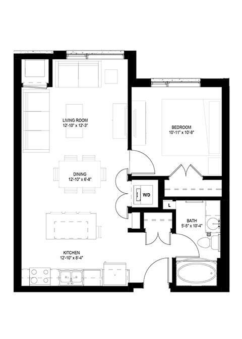 Apartment Model: One Bedroom - A1 Bedroom, 1 Bath, 671 sq ftAvailable January 1, 2026One Bedroom - A - Floorplan 1 Apartment Unit: 1-118Apartment Model: One Bedroom - A1 Bedroom, 1 Bath, 671 sq ftAvailable January 1, 2026One Bedroom - E