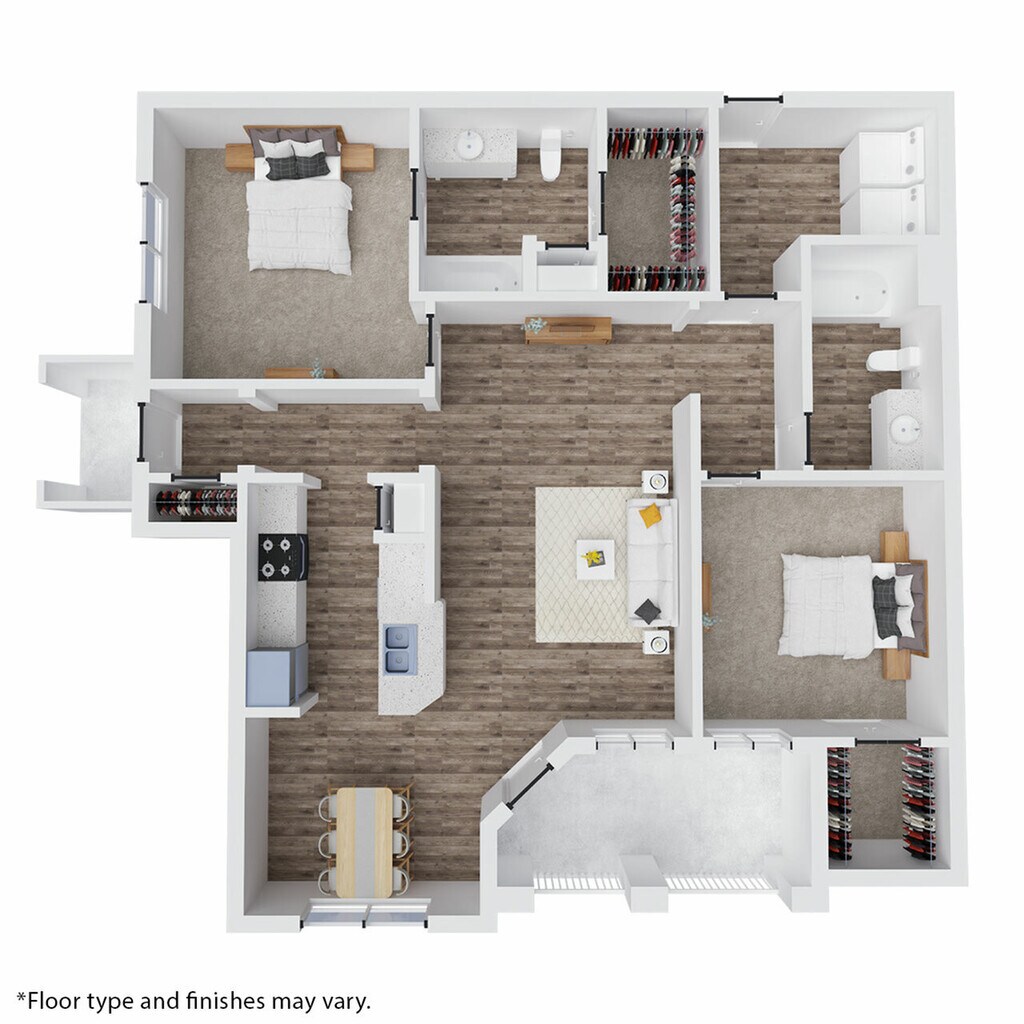 2 Beds, 2 Baths, 1304 sq ftAvailable Nov 27Largest 2 BedroomThis is the largest 2 Bedroom at this PropertyModel Gallery