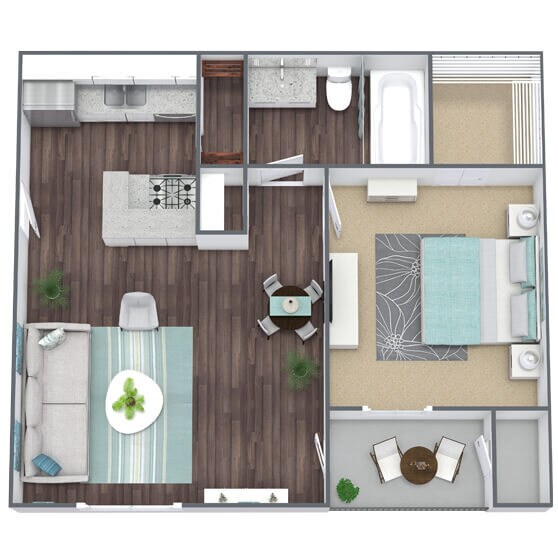 1 Bed, 1 Bath, 617 sq ftAvailable NowModel Gallery