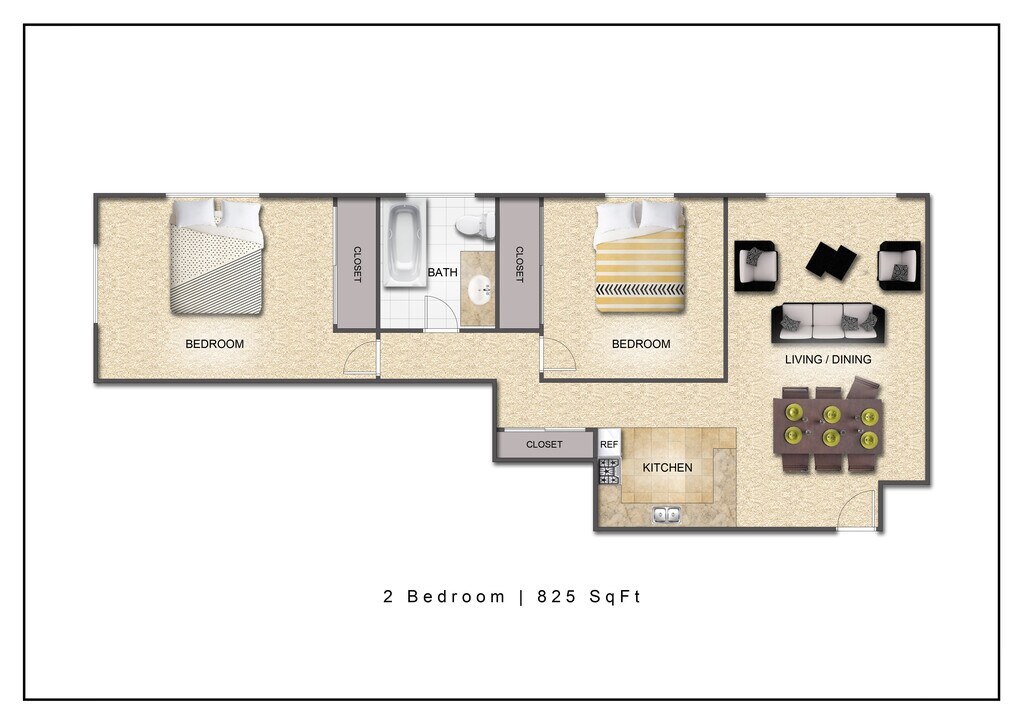 2 Beds, 1 Bath, 825 sq ftModel Gallery