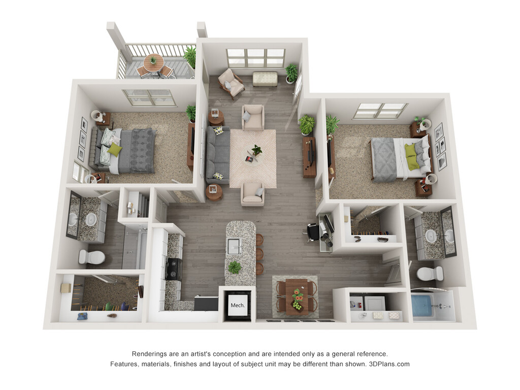 2 Beds, 2 Baths, 1193 sq ftAvailable NowModel Gallery