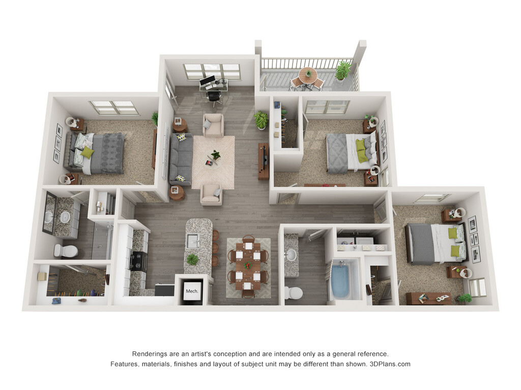 Apartment Model: Three Bedroom$1,9703 Bedroom, 2 Bath, 1409 sq ftAvailable NowThree Bedroom - Floorplan 1