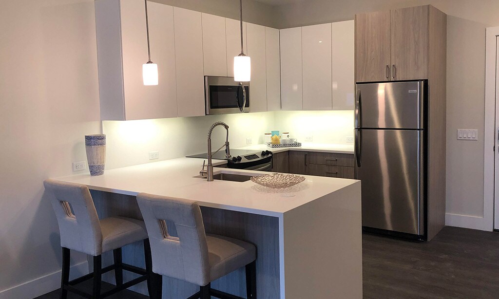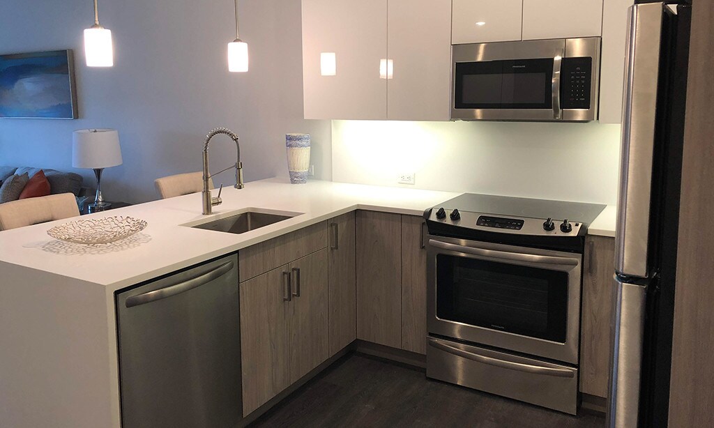 Grand Street Lofts is a brand new, sustainable community equipped with the latest green-building technology including a green roof with solar energy generation and non-fossil fuel heating. WiFi programmable thermostats, water-saving fixtures, smart home locks, and LED lighting are available throughout. Living spaces are designed with the modern renter in mind. Brand new apartments at Grand Street Lofts include a mix of one- and two-bedroom units ranging in size from 770 to 1,170 square feet. Each open floor plan apartment interior features high ceilings, nine-foot windows, and entertainment-ready spaces. Kitchens are equipped with quartz countertops, designer cabinetry, and ENERGY STAR® water-saving appliances. Each unit has a full-size washer and dryer. Community amenities include an exercise studio, bicycle storage, covered off-street parking, and a rooftop relaxation deck with lounge seating and fire pit. Strategically located in the Mamaroneck downtown district’s new MAKER zone and just steps away from the Mamaroneck Train Station, the community is a commuter’s dream with easy access to New York City or New England.