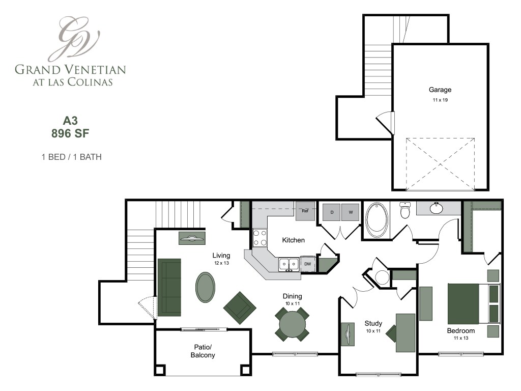 1 Bed, 1 Bath, 896 sq ftModel Gallery