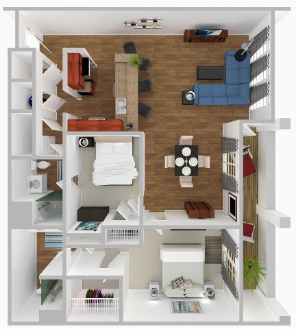 1 Bed, 1 Bath, 843 sq ftModel Gallery