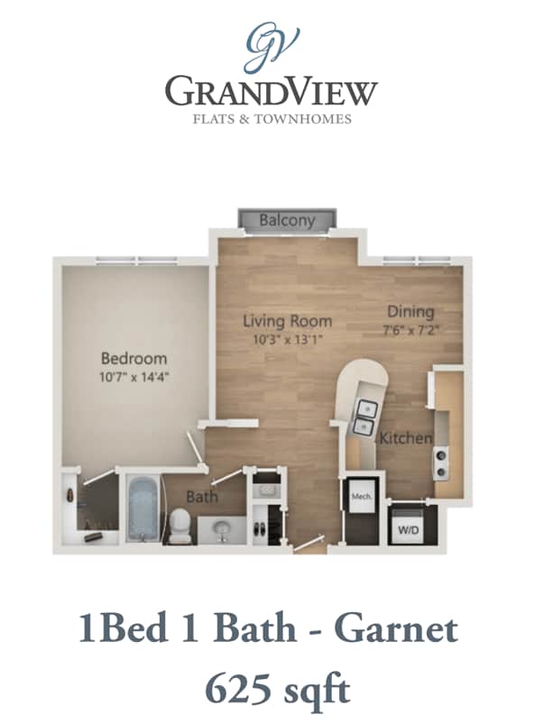 GrandView Flats and Townhomes offers 1 to 3 Bedroom apartments starting from $1,270 and having 625–1,372 sq ft. Here is the current pricing and availability:
