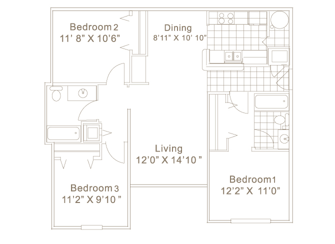 Apartment Model: Woodland3 Bedroom, 2 Bath, 1073 sq ftUnavailable![]()