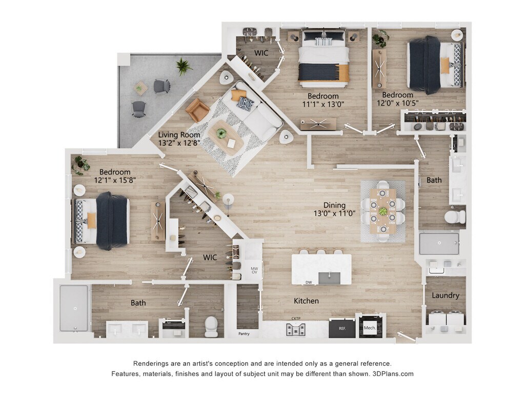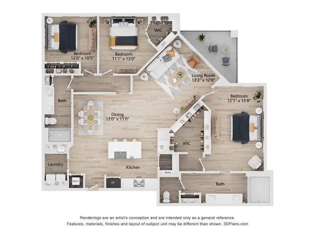 Apartment Model: B3From $3,3952 Bedroom, 2 Bath, 1757 sq ftAvailable February 1, 2026![]()