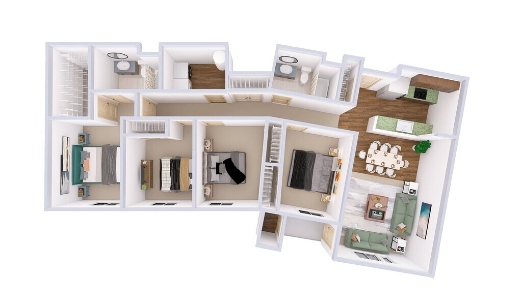 - 1, 2, 3, 4 and 5 Bedroom Apartment Homes