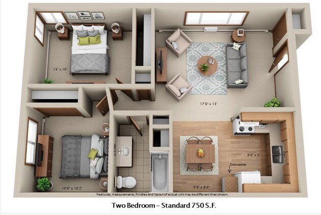 2 Beds, 1 Bath, 750 sq ftModel Gallery