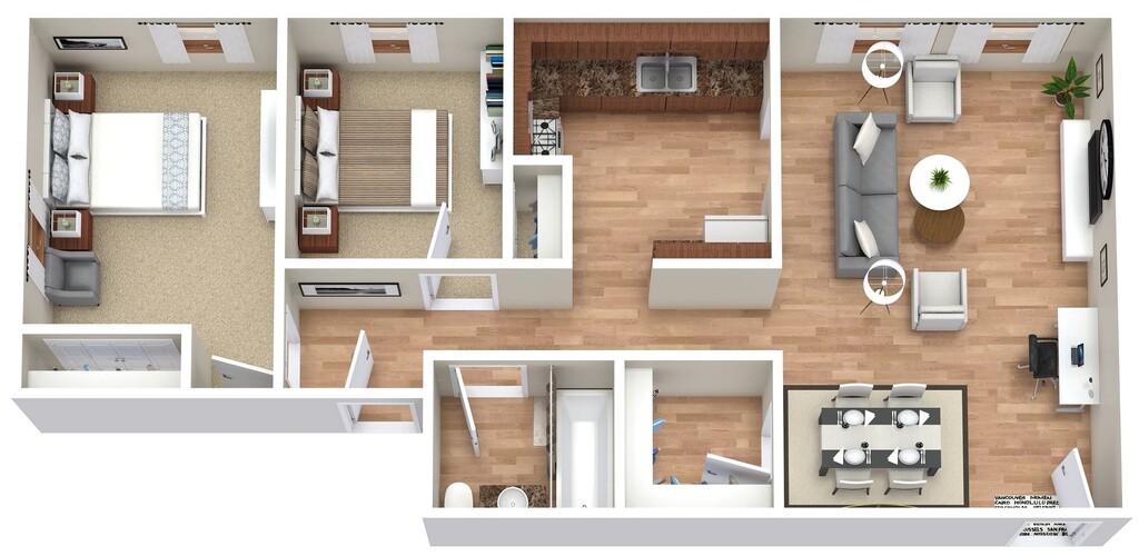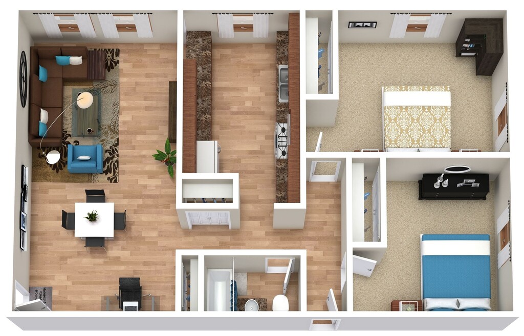 Apartment Model: 2 Bed 1 Bath2 Bedroom, 1 Bath, 850 sq ftUnavailableFloorplansPhotos![]()