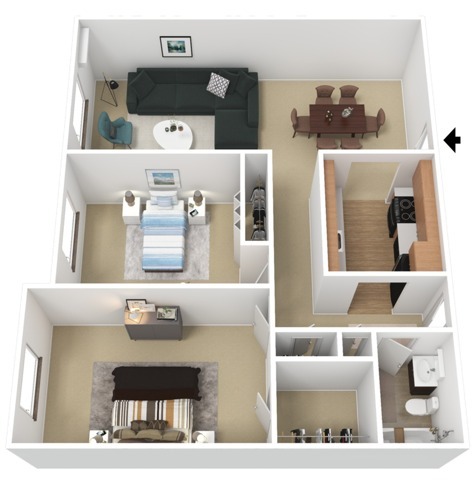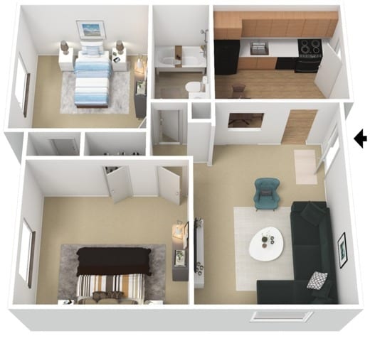 2 Beds, 1 Bath, 810 sq ftModel Gallery