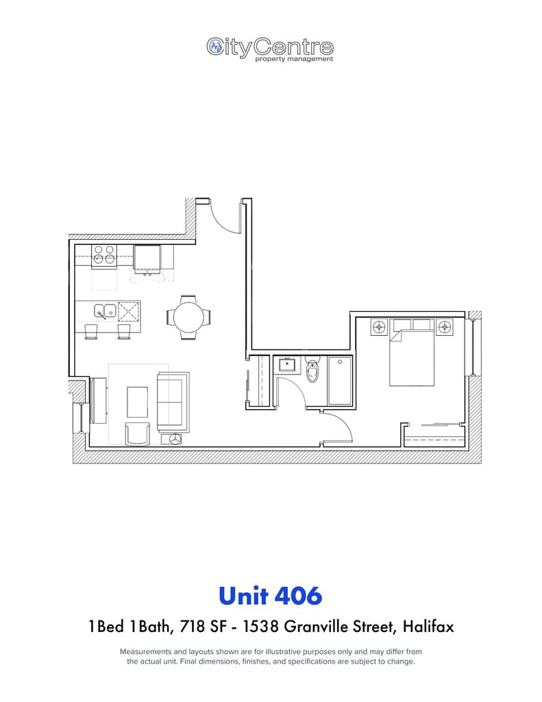 Apartment Unit: 406Apartment Model: 1-bedroom1 Bedroom, 1 Bath, 718 sq ftAvailable November 1, 2025Unit: 406 - Floorplan 1 1 Bed, 1 bath