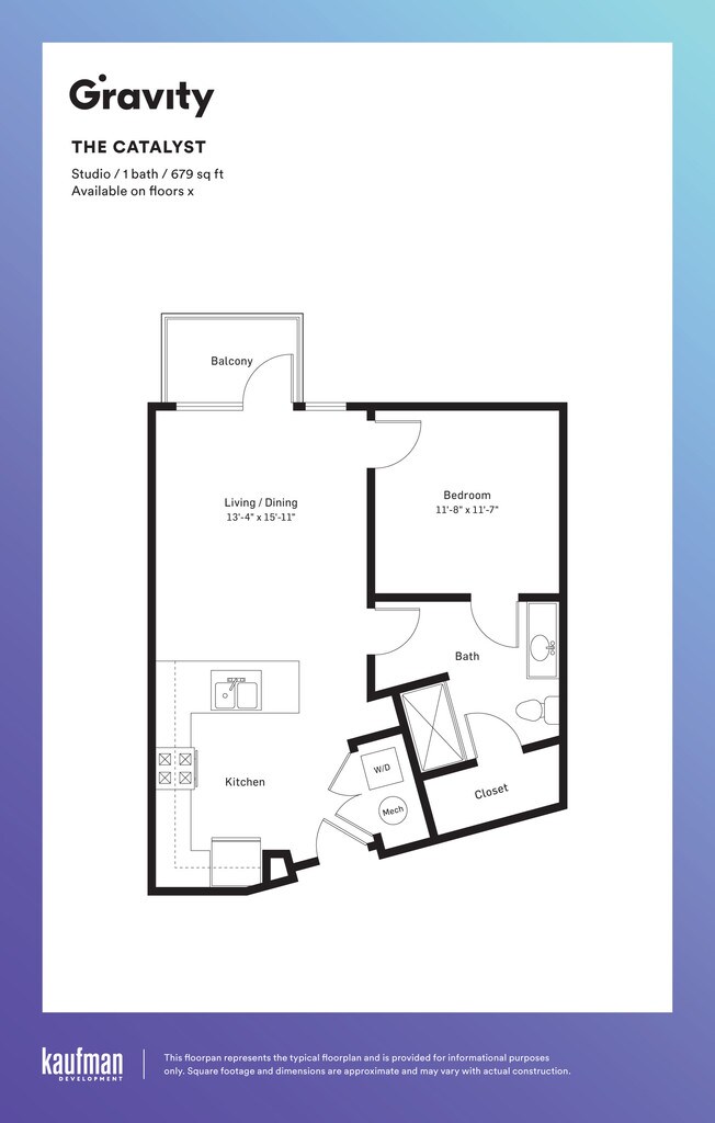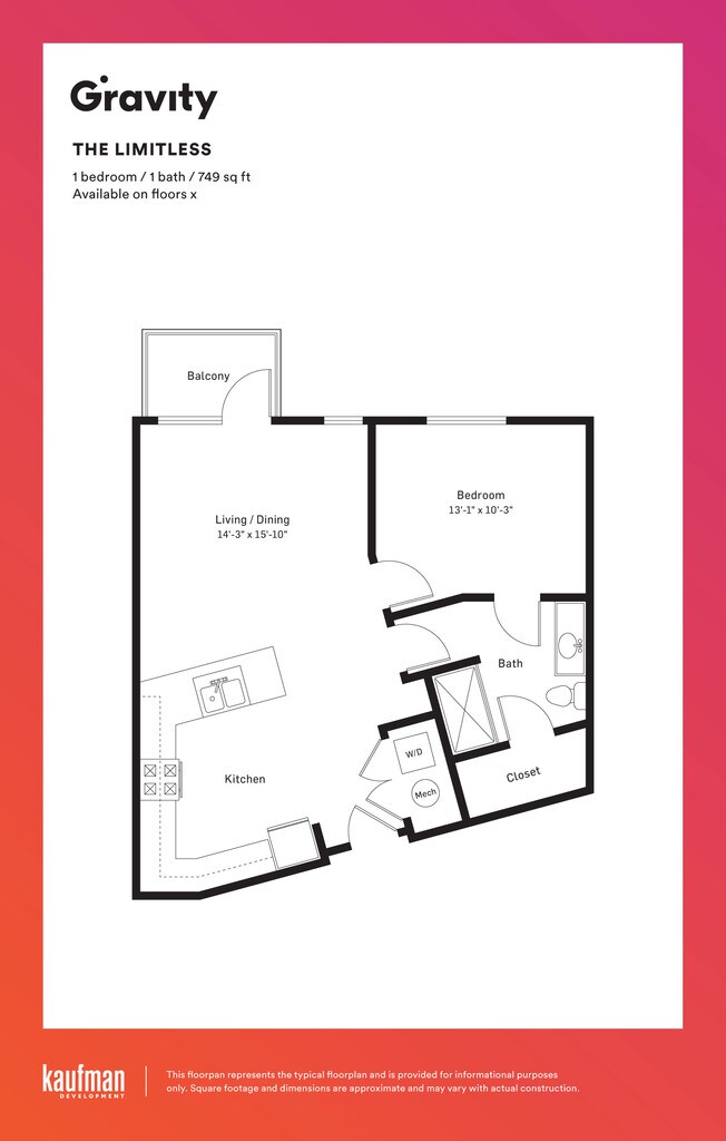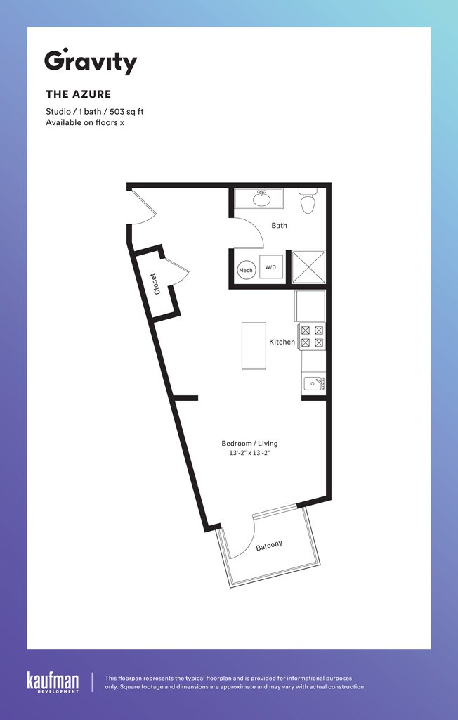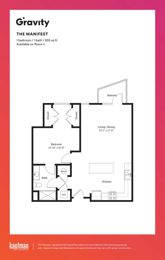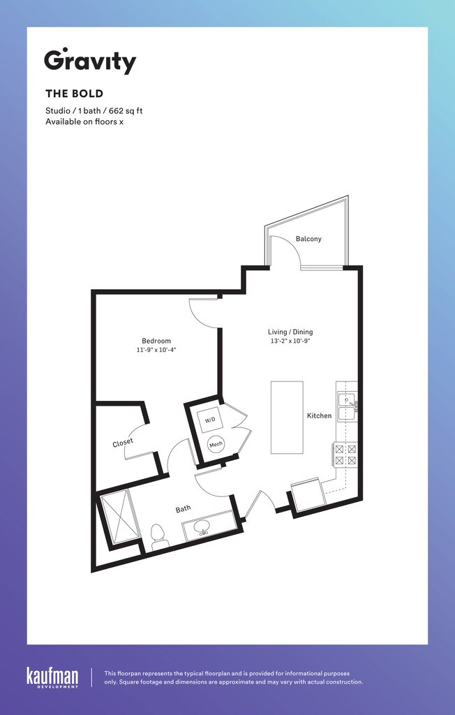 Gravity offers Studio to 2 Bedroom apartments starting from $855 and having 416–1,174 sq ft. Here is the current pricing and availability: